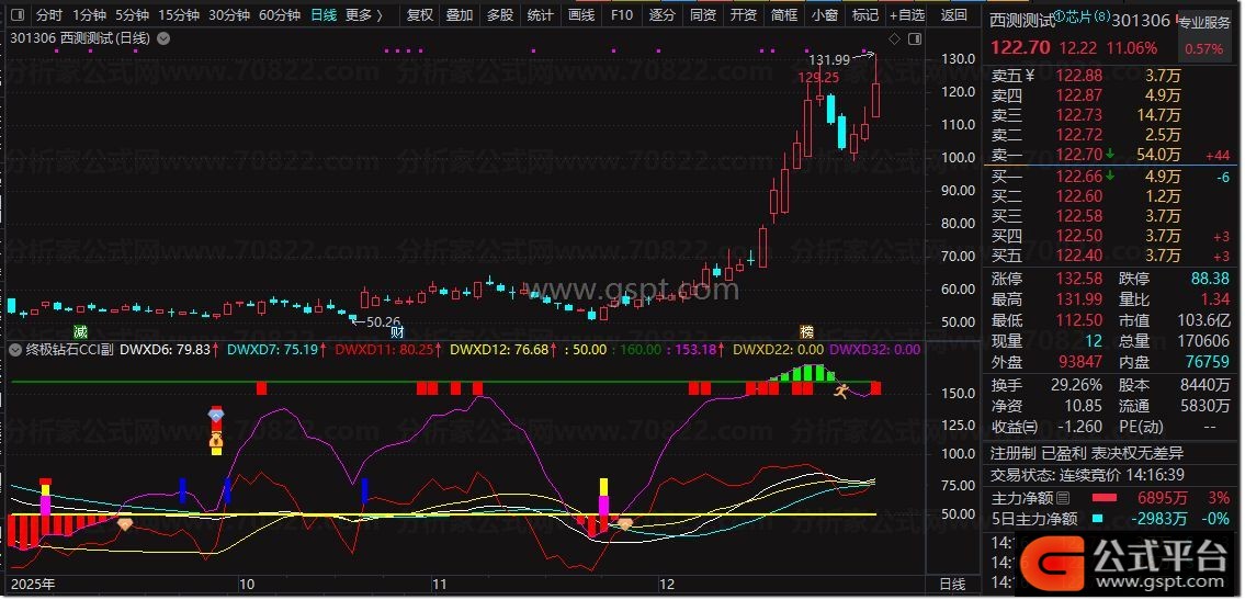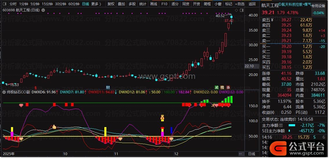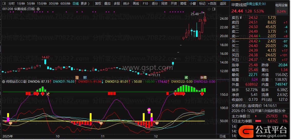 DWXD53:=(TYP-MA(TYP,14))*1000/(15*AVEDEV(TYP,14));