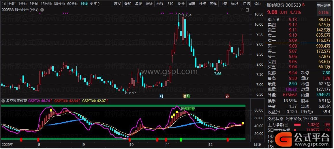 DRAWTEXT(CROSS(84,GSPT50),84,'顶部预警'),COLORGREEN;