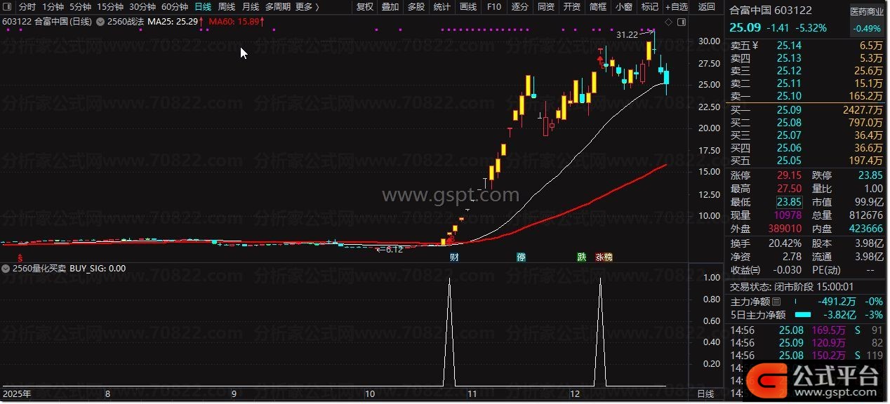 25日均线作为中期趋势生命线,股价在其上运行代表趋势健康。60日均线作为长期趋势牛熊分界线,25日线在60日线之上是操作前提,确保站在多头一方。