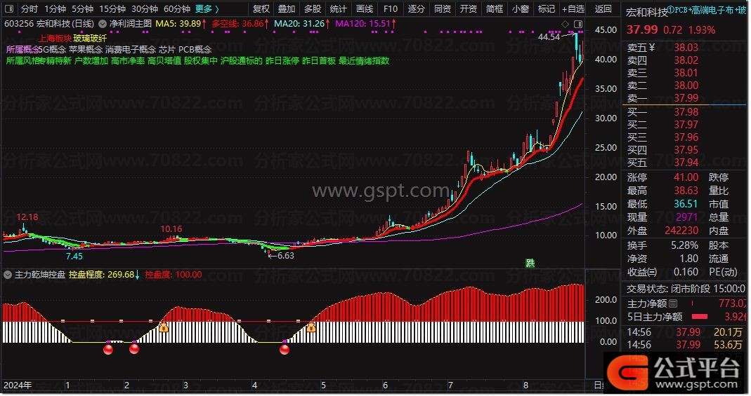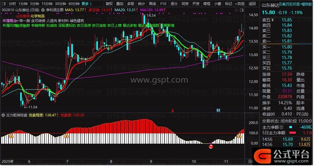 控盘程度:(IF(gspt6>N1,gspt6-N1+2,0))*2.5,COLORYELLOW;
