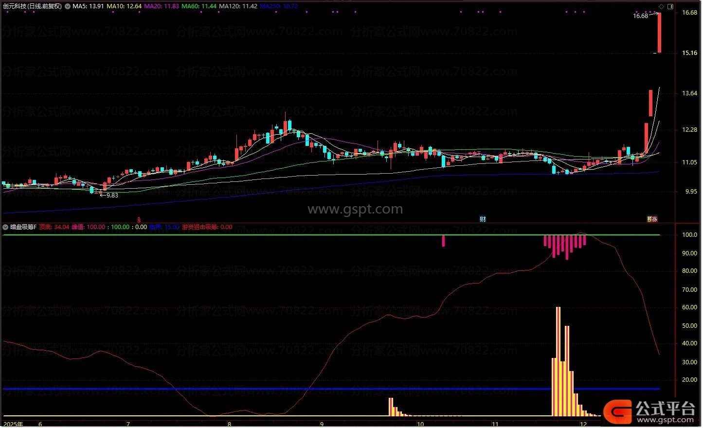 风险控制当顶底曲线持续下滑峰值逼近100且价格高位放量时表明市场处于超买注意回调风险。