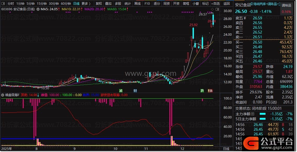 短线操作时关注游资狙击吸筹柱体增长暗盘吸筹信号激活VAR20红色粗柱三者同时发生时成功率更高;