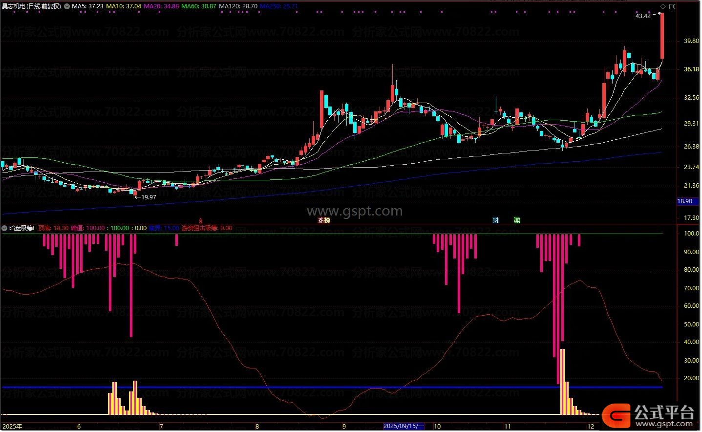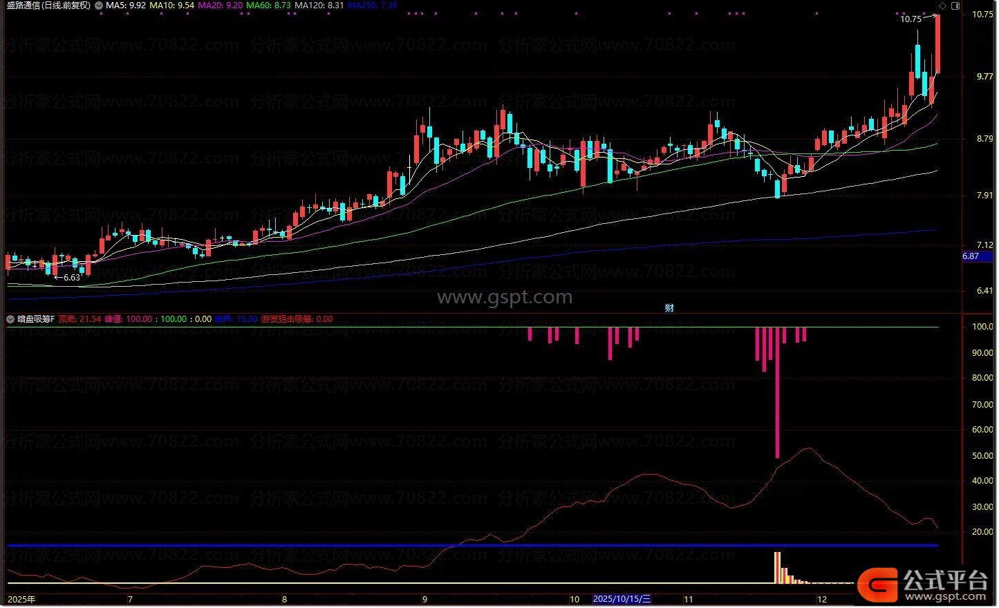 此款指标是多维度综合分析工具,整合了筹码分布、超买超卖状态、量价关系、机构与散户资金动向以及游资吸筹等核心逻辑。它主要用于发现个股的底部吸筹迹象和趋势反转的关键点,辅助评估股价的顶部和底部位置及资金流向的变化,适用于短线或波段交易决策。