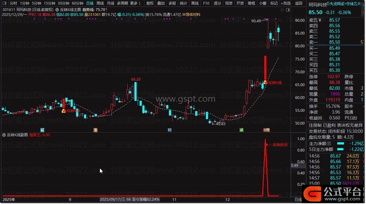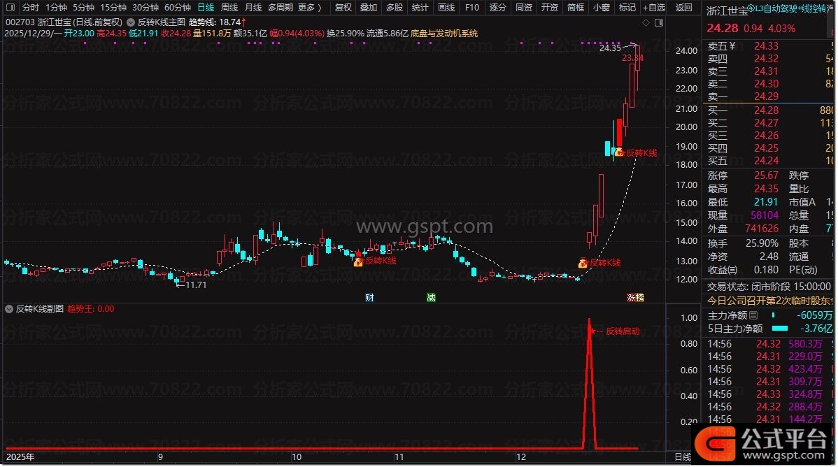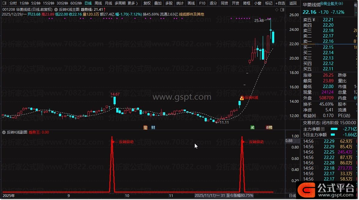 趋势王:反转启动 ,LINETHICK3,COLORRED;{公式平台 公式源码 http://www.gspt.com}