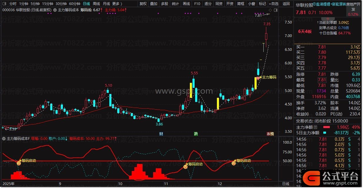 筹码线:MA(C,5)DOTLINE;