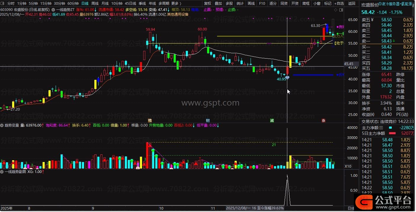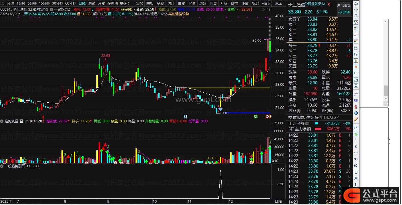 低位放量上涨买入,高位天量不涨卖出。公式平台 公式源码 http://www.gspt.com 提供一线趋势主图副图选股指标下载。