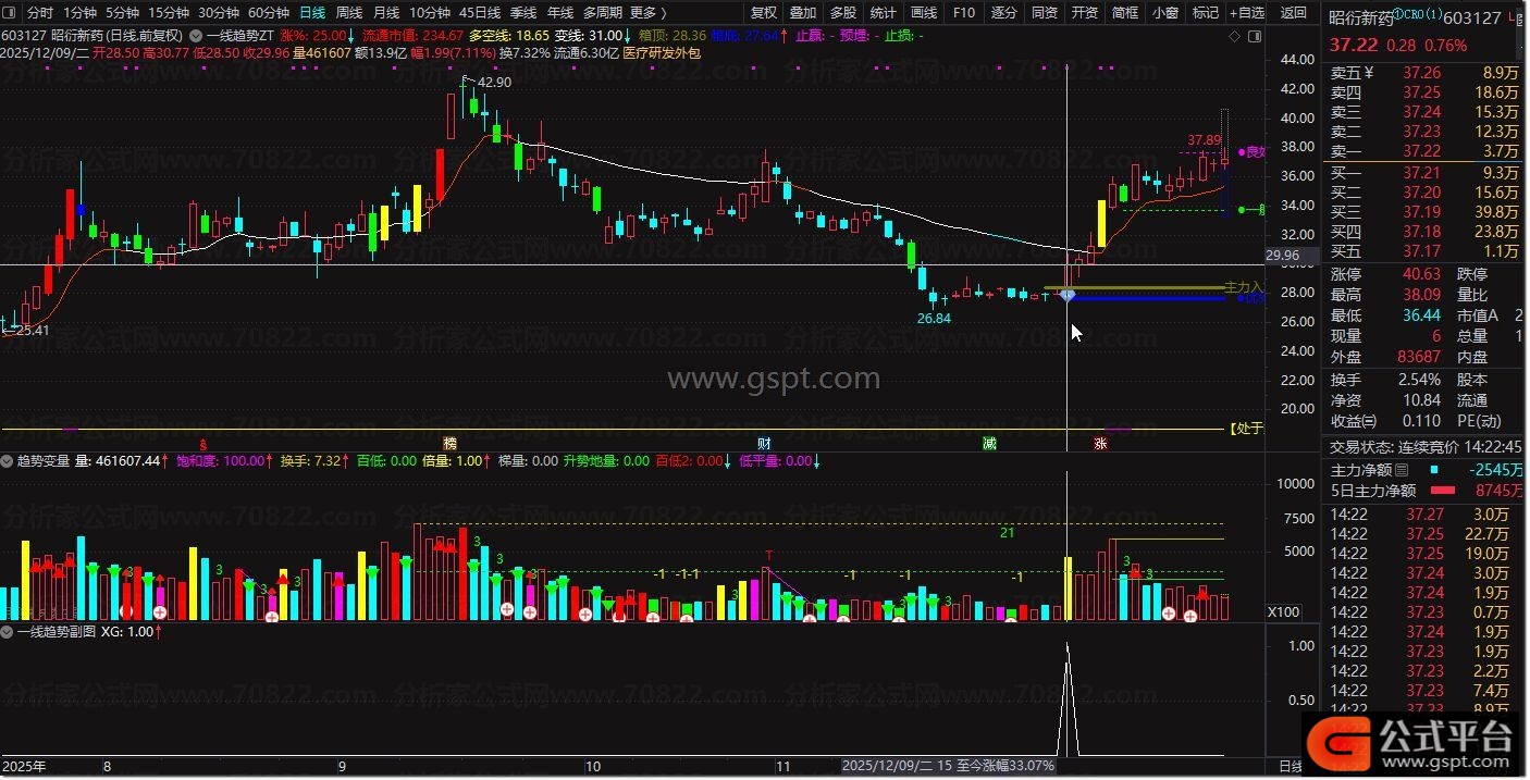 一线趋势主图指标搭配趋势变量副图指标,包含无未来函数选股公式,适用于通达信分时与日线交易。