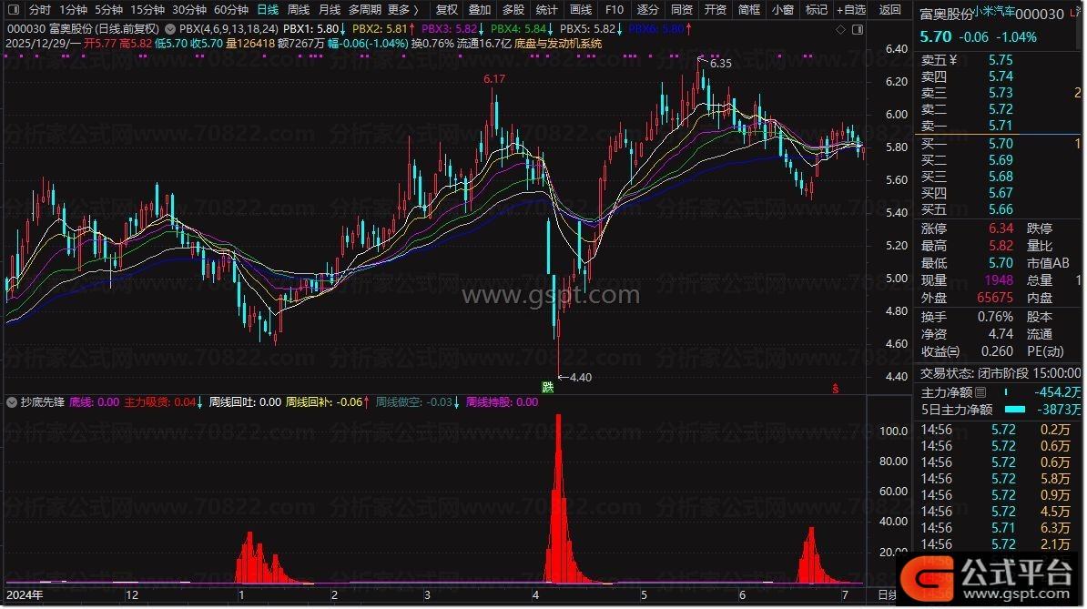 2. 辅助判断:“周线回补”(黄色)出现时,代表短期回调到位,可强化抄底信号;“周线持股”(洋红色)持续在线,说明底部企稳,持股性价比高;