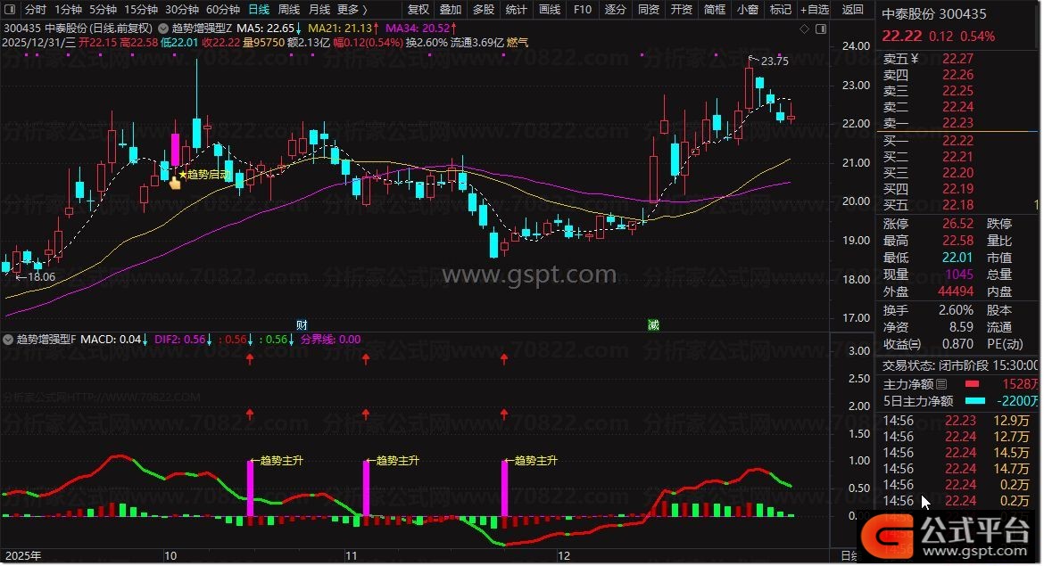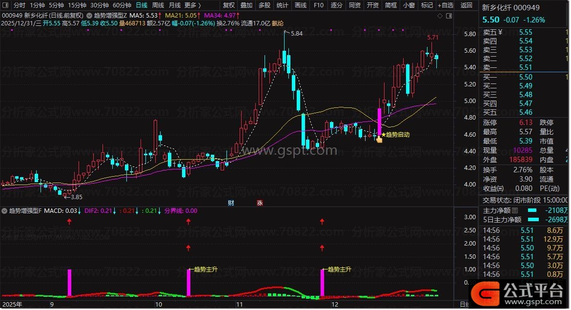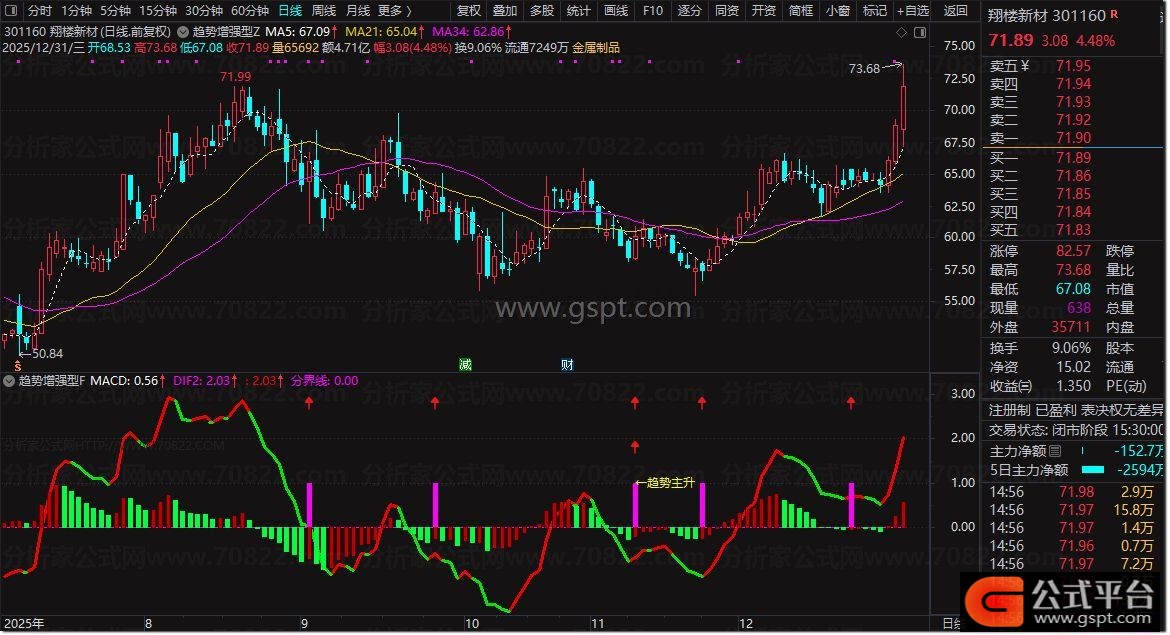 通达信【趋势增强】多因子共振指标,主图+副图+选股指标