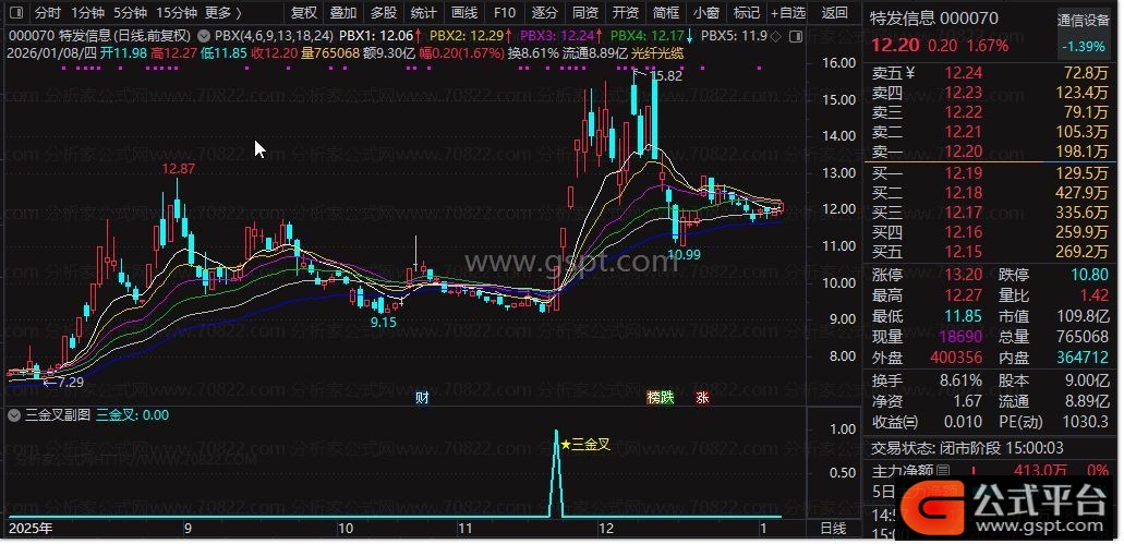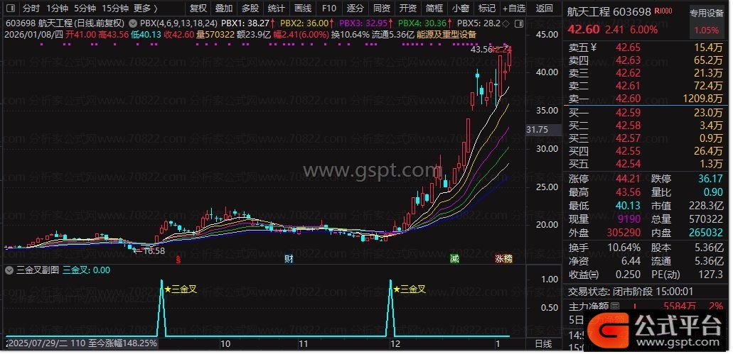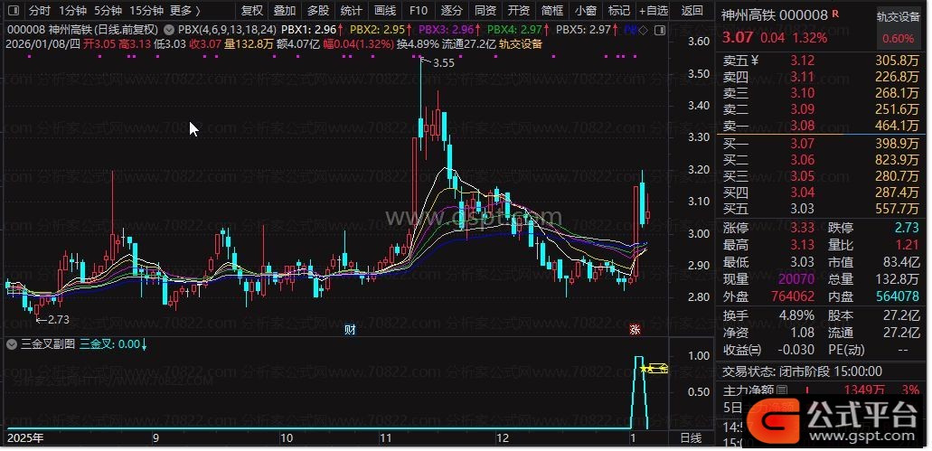 三金叉:IF((gspt10<=1 AND gspt11<=1 AND gspt13<=1),1,0),LINETHICK2,COLORFFFF00;