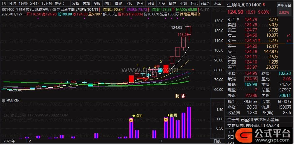 1 通达信资金抱团指标柱体出现,代表游资资金正逐步介入;柱体长短直接反映主力资金量大小,当资金量能达到特定阈值时,意味着多路资金从分歧转向一致,此时会精准提示资金抱团信号,助力捕捉主力资金合力拉升机会。