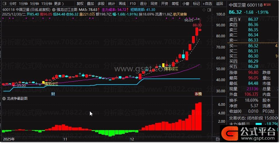 DRAWTEXT(FILTER((gspt12>90),35),LOW*0.98,' 强龙过江'),COLOR00FFFF;