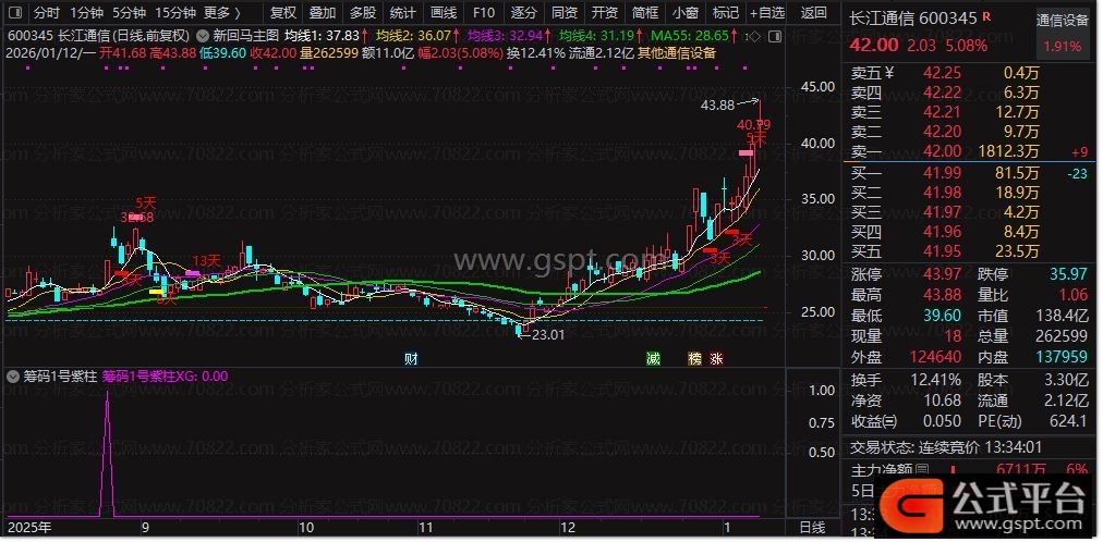 DRAWTEXT(ZYGZT=4,H*1.06,'5天'),COLORRED;
