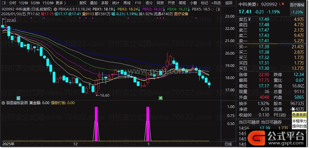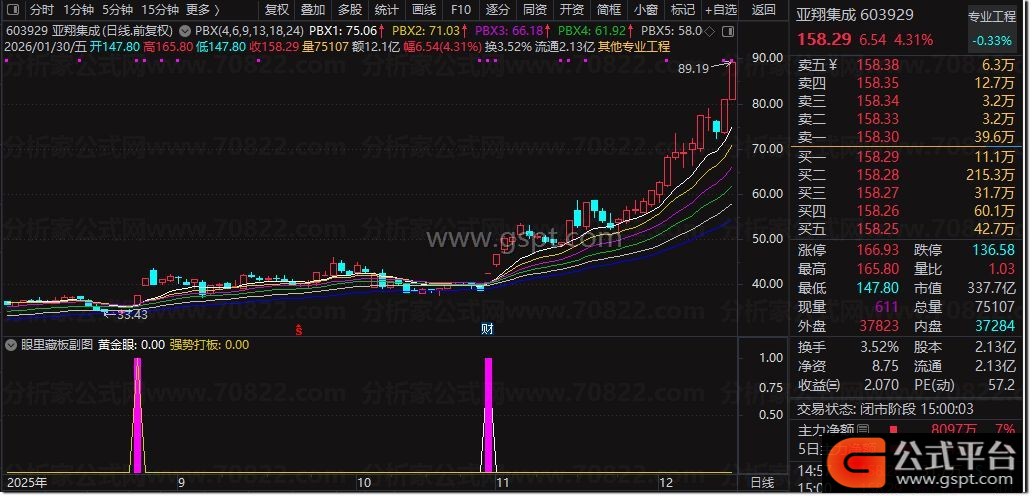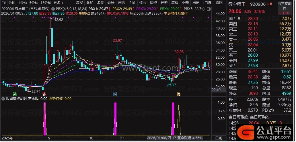 1. 副图公式:直接导入通达信副图,粉色柱为「黄金眼」信号、黄色标注为「强势打板」信号,可直观查看个股信号出现位置与量价、均线配合情况;