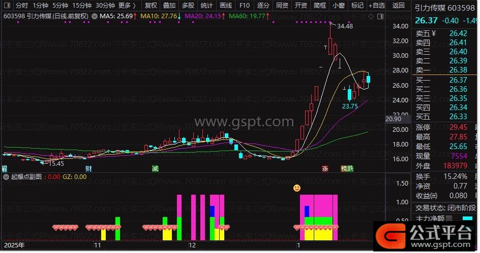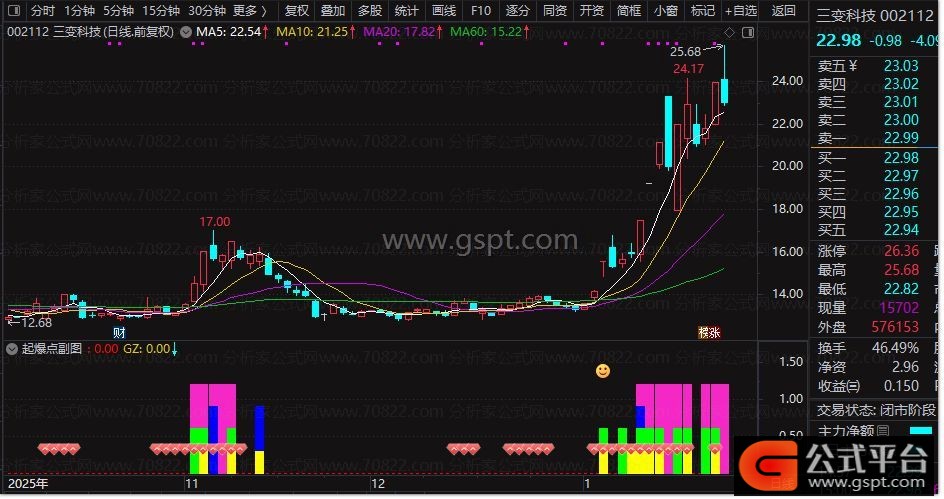 - 向上箭头:符合“gspt29”复合条件(包含涨停、主力金叉、量价配合等)