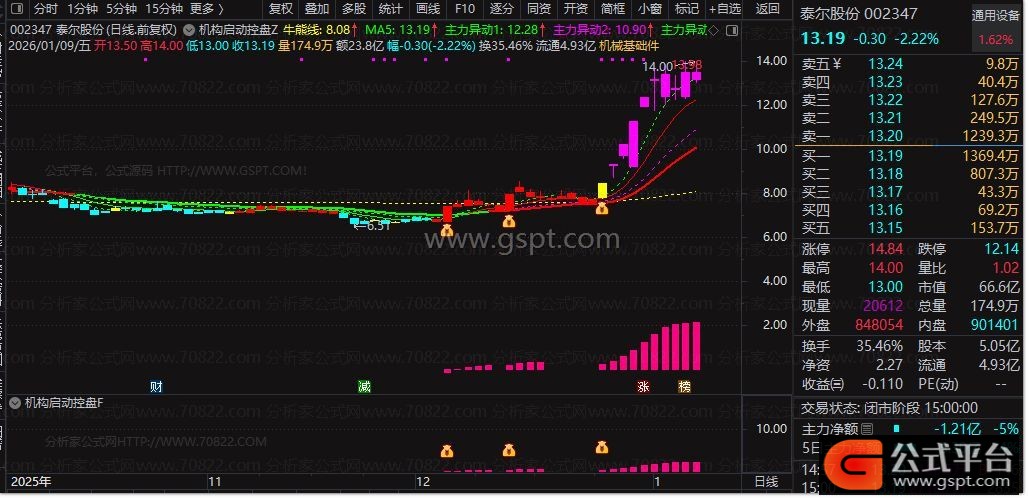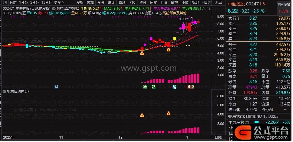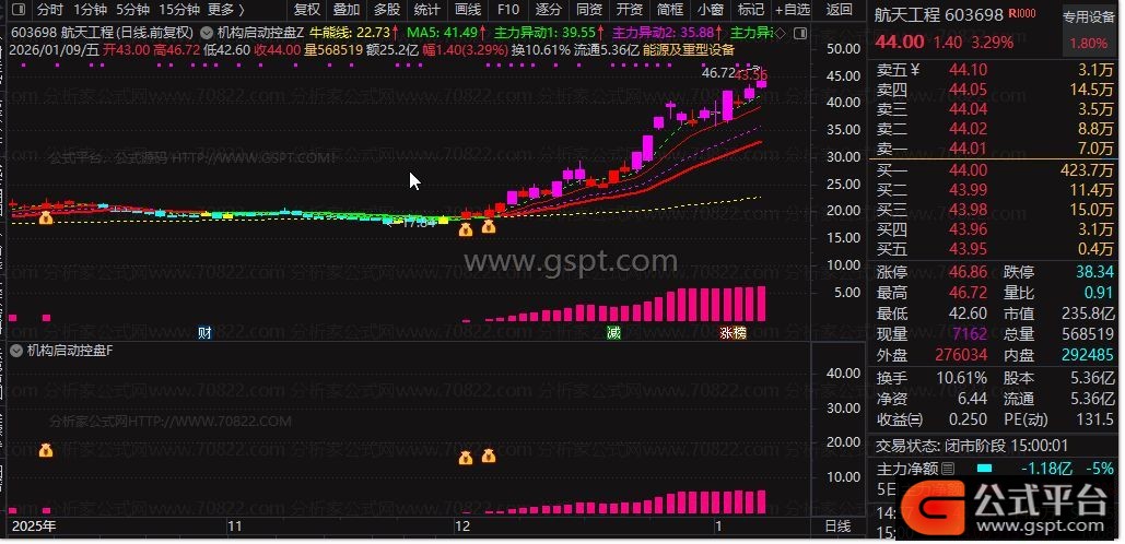 本套公式含**机构启动控盘主图、副图、选股公式**,三位一体联动分析,核心融合均线趋势、MACD核心逻辑、KDJ金叉、主力资金动能、量能筹码等多维度数据,精准捕捉主力建仓控盘、拉升启动信号,剔除停牌、ST、创业板、科创板风险标的,过滤无效杂波,信号精准度高,适合波段跟庄、抓启动买点。