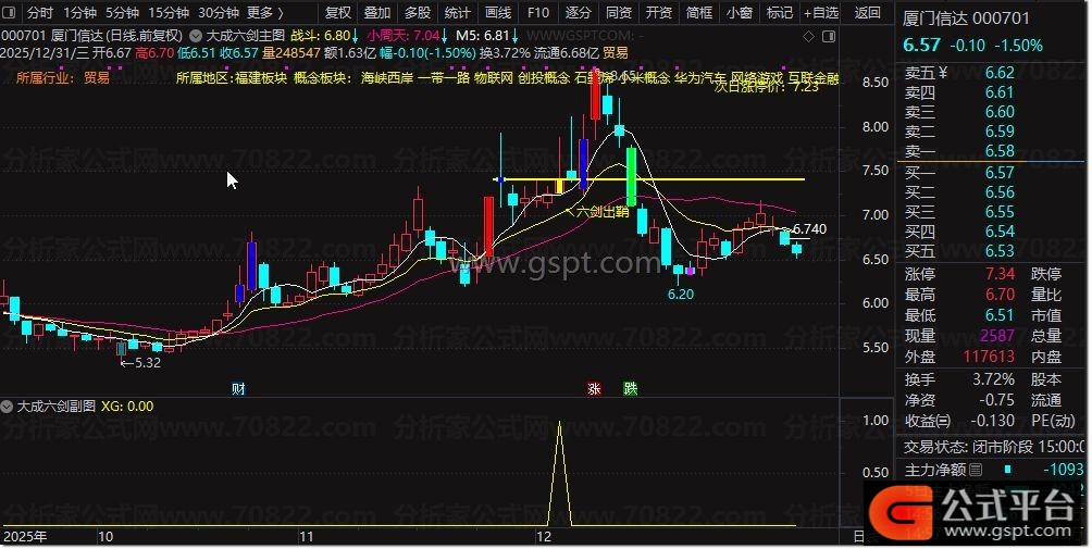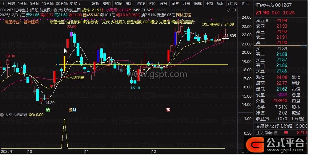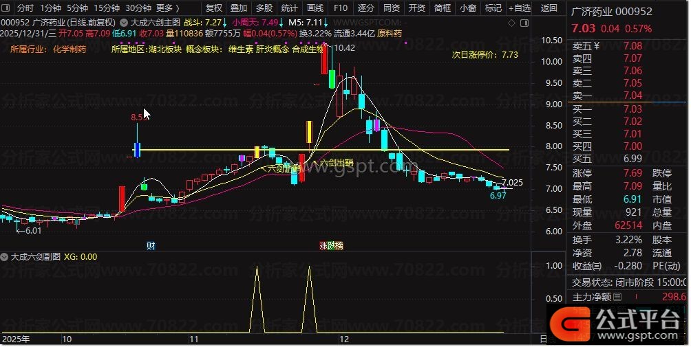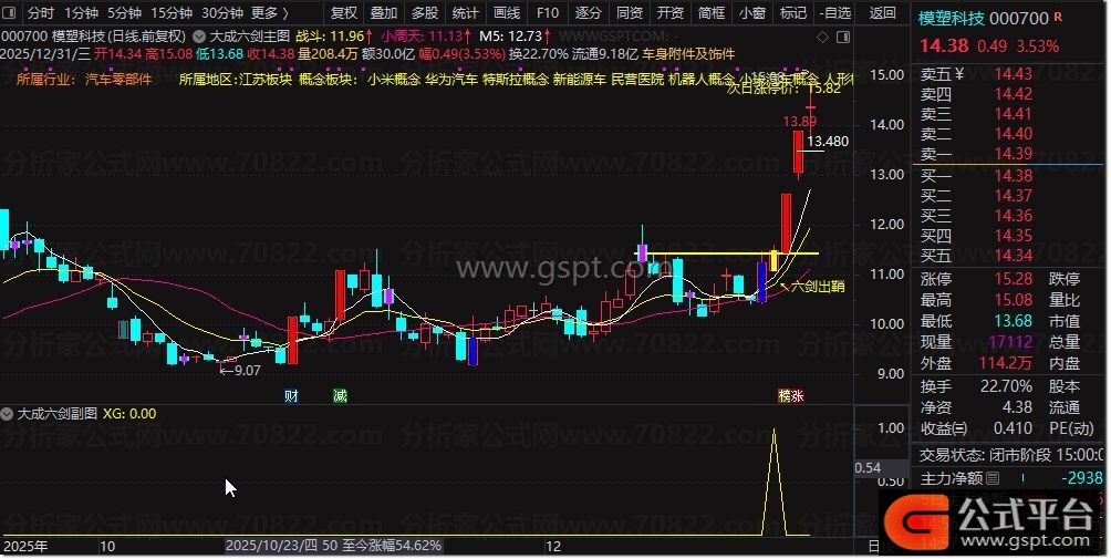 STICKLINE(XG,O,C,1,0),COLORYELLOW;DRAWTEXT(XG,L*0.97,' ↖六剑出鞘'),COLORYELLOW;