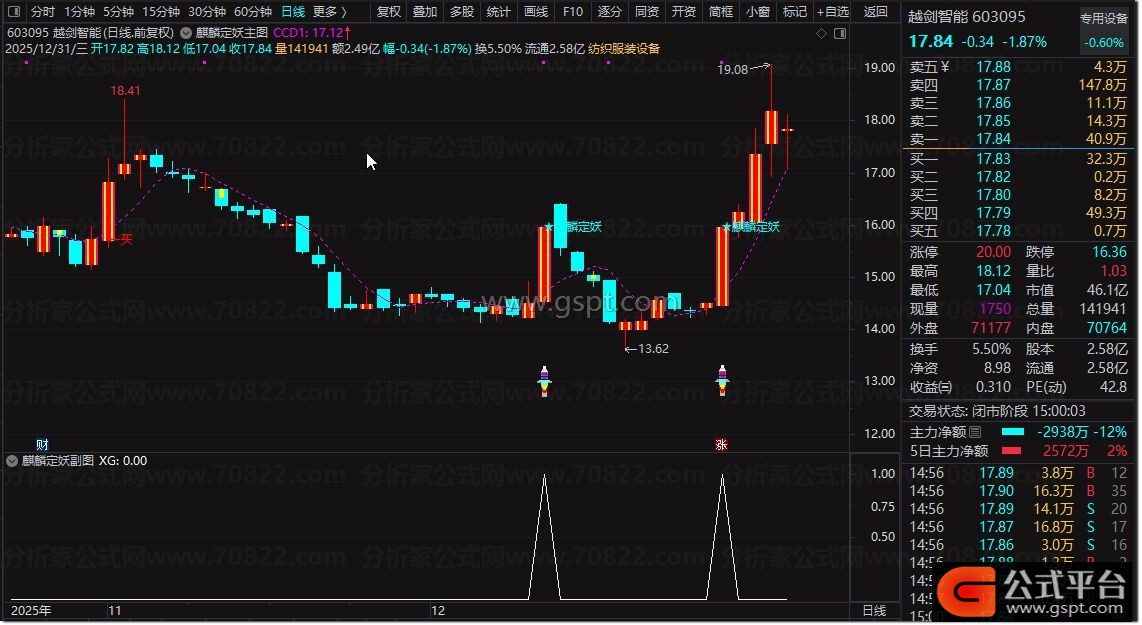 异动点:=BARSLASTCOUNT(GSPT_5)=1;