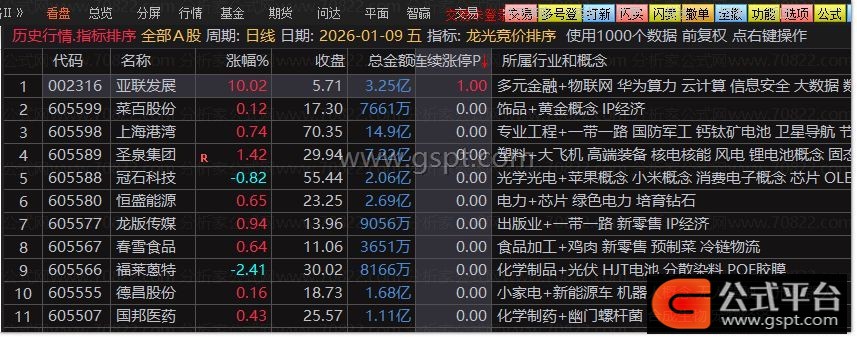 通达信『龙光竞价排序』优化版,某平台和谐的金钻公式