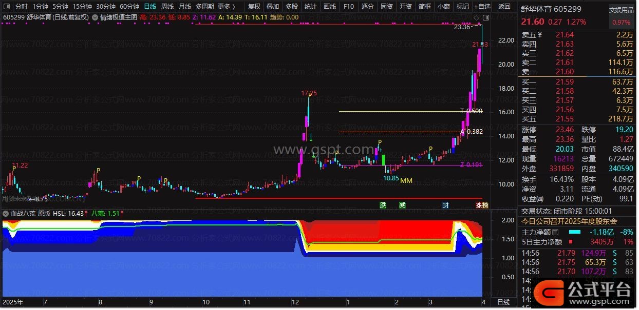 通达信『情绪极值主图』 斐波那契坐标系构建 股票情绪锚点可视化 趋势转折结构判断公式