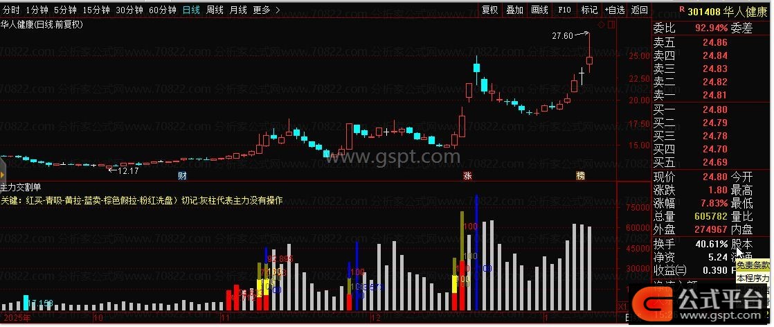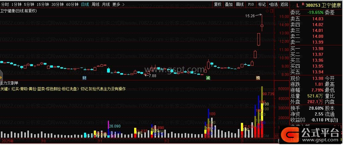 该公式将复杂的主力行为转化为直观色谱,帮助投资者穿透盘面迷雾,真正看懂“K线背后的故事”。