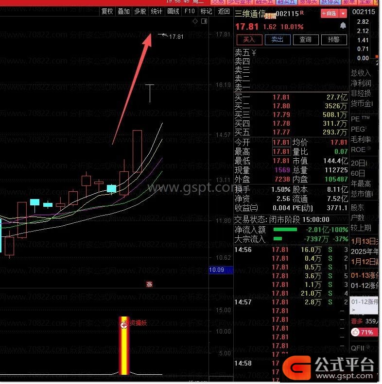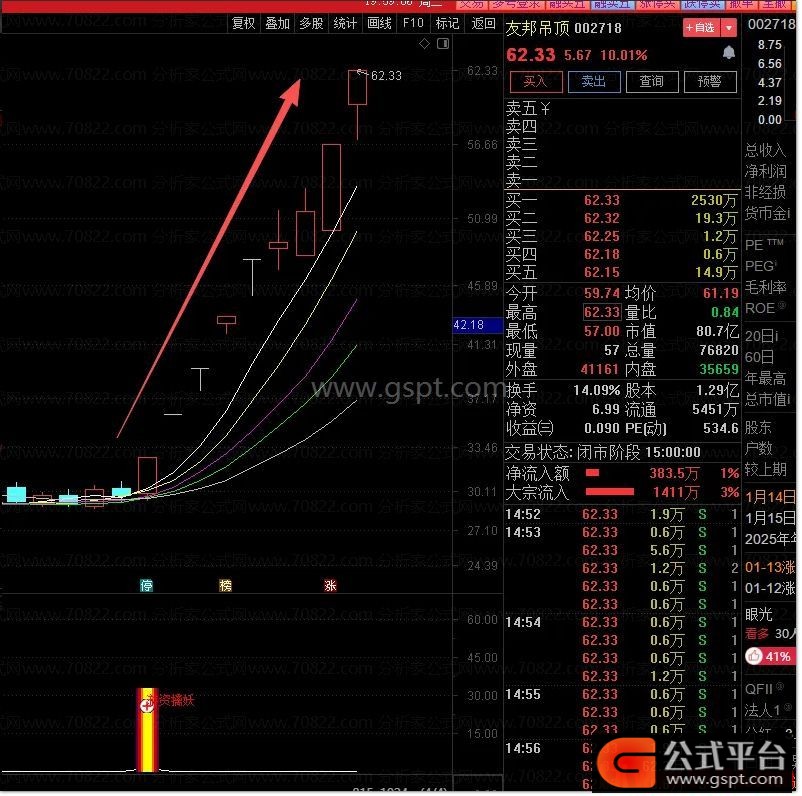 次佳买点:信号次日,若股价高开且不破前日收盘价,可作为接力买点。