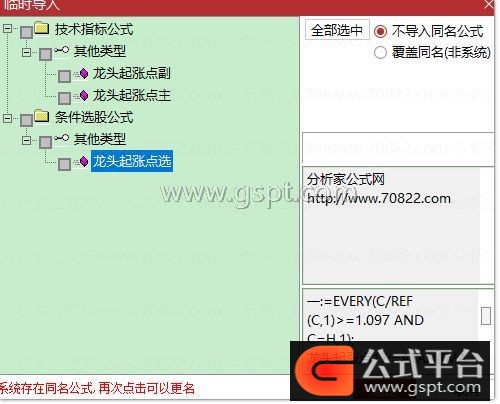 1. 通达信软件→功能→选股器→条件选股,选择「龙头起涨点选股」公式,执行选股即可;