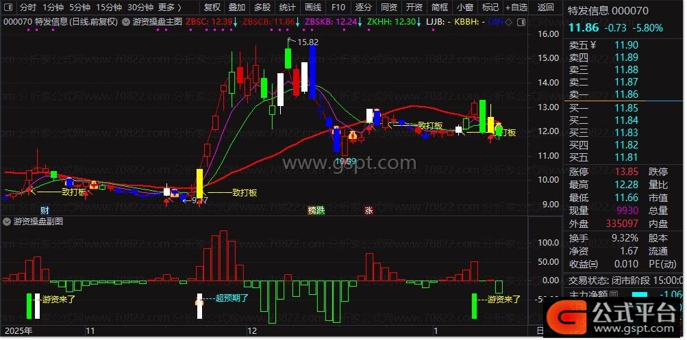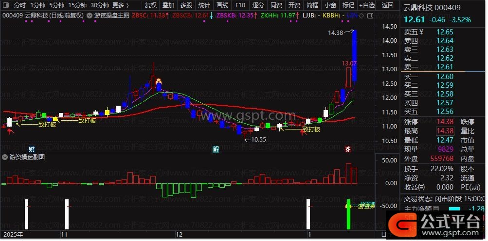 副图公式:通过多维度资金与情绪指标监控游资动向。