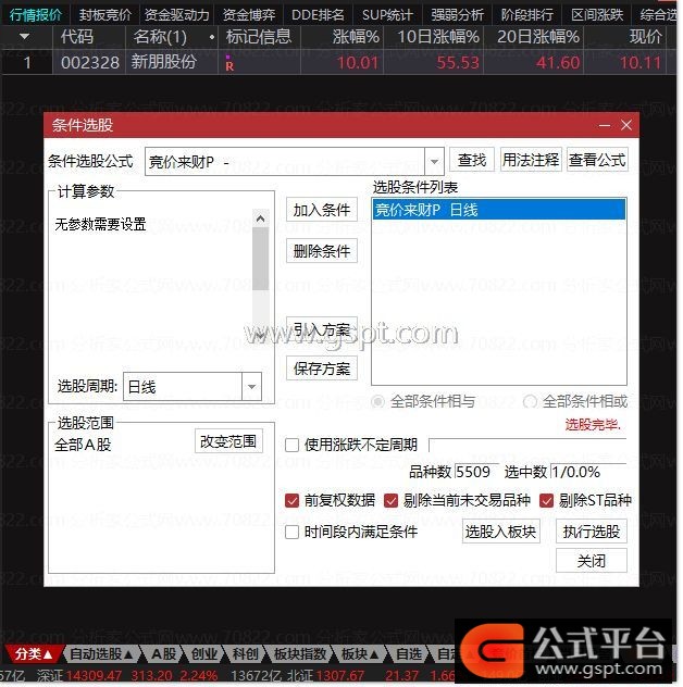 1. 适用场景:**A股早盘9:25-9:30集合竞价时段**,仅用于主板股票排序;
