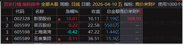 2. 调用方式:通达信软件新建公式粘贴源码,加入竞价排序栏,按「竞价来财P」数值降序排列;