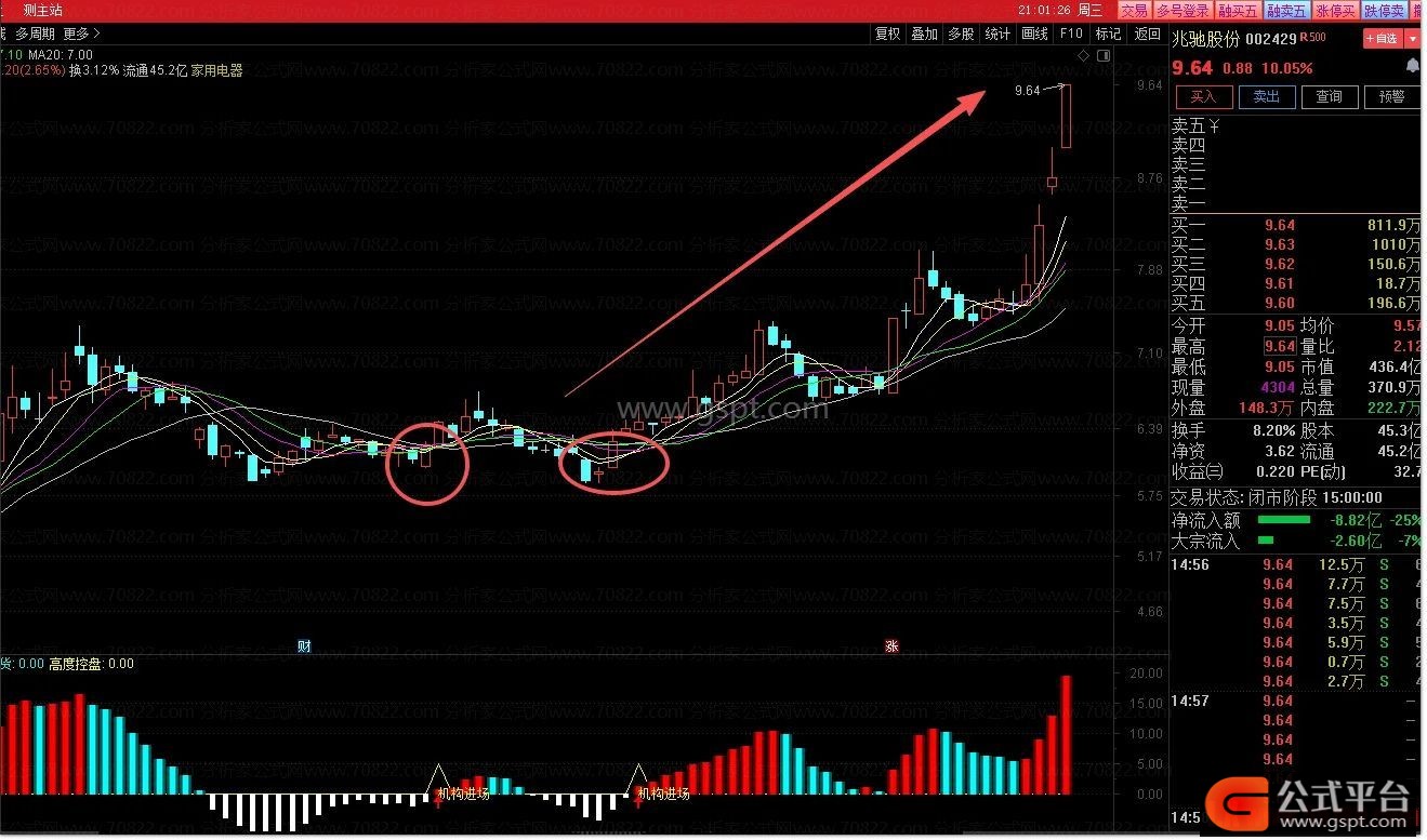 形态特征:股价长期下跌或横盘,指标持续显示绿柱。突然出现第一根红柱,且股价站上20日均线。