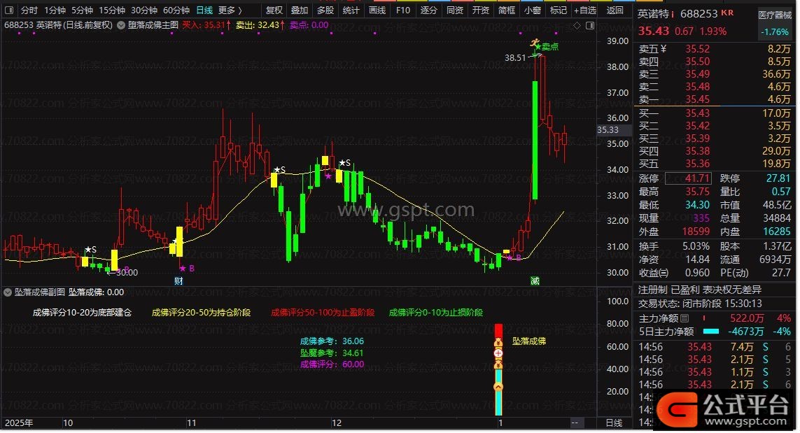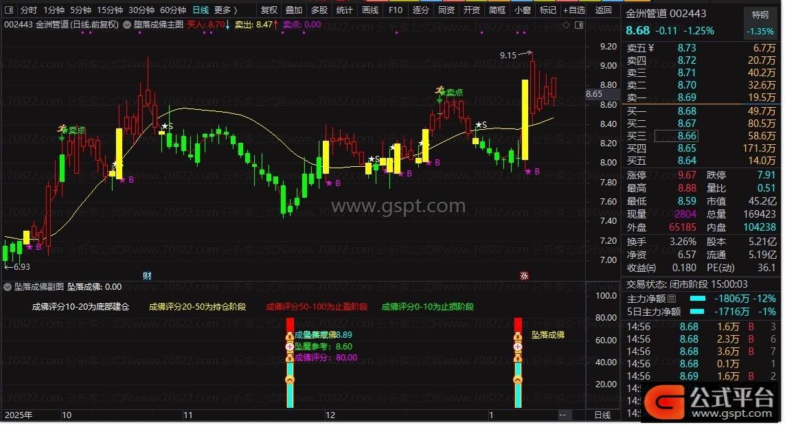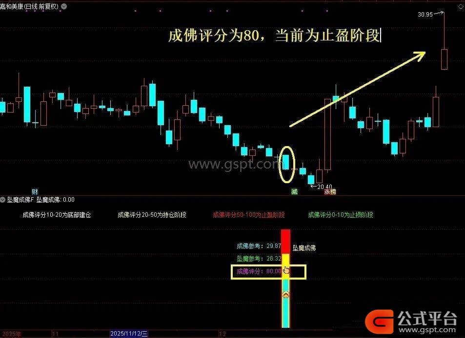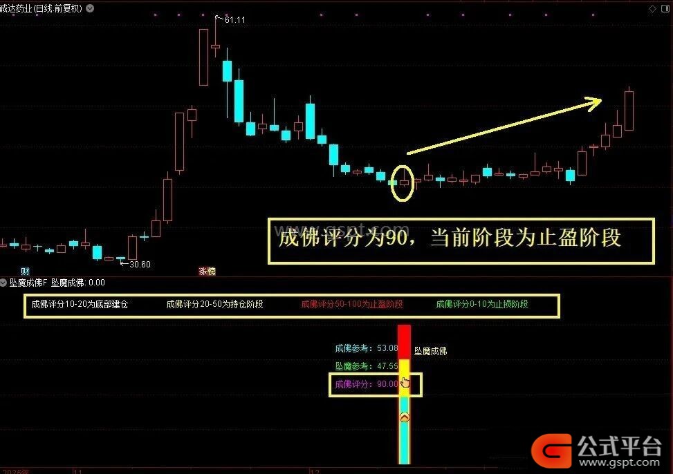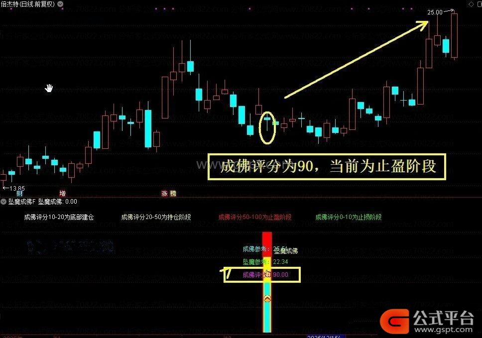 信号出现时,成佛评分通常在20附近,此为建仓信号。评分在20-50之间为持仓阶段,50以上为止盈阶段。若建仓后评分持续低于10,则需止损。出现双重信号时,后期上涨概率较高。