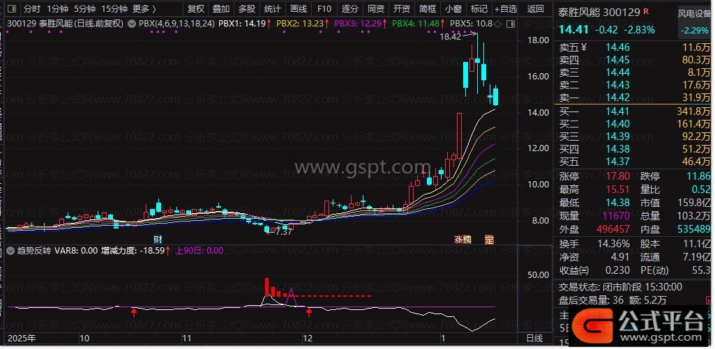 VAR11:=EMA(IF(LOW<=VAR5,(VAR4+VAR6*2)/2,0),3)/618*VAR7*(-1);