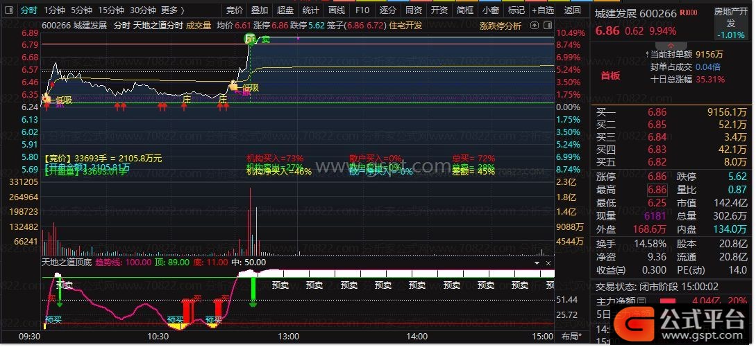 通达信『天地之道分时主图+顶底副图』精准判断分时走势,T+0高抛低吸点位