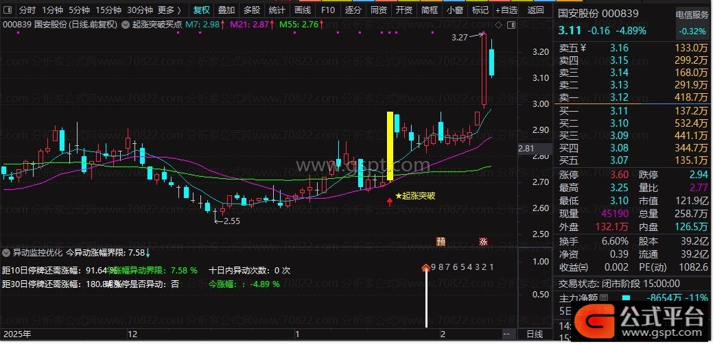 DRAWTEXT_FIX(ISLASTBAR AND 明涨停是否异动=0,0.20,0.26,0,STRCAT('明涨停是否异动:','否')),COLORWHITE;