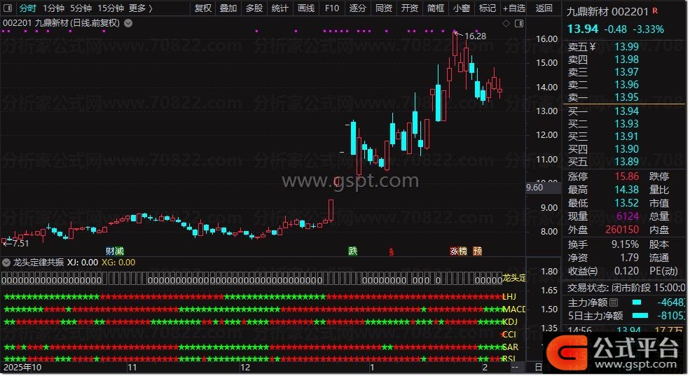 3. 实战应用:数字为6(品红色)时,代表六大指标完全共振,是强势龙头股的重要信号,可重点关注;数字为5(红色)时,属强共振次优信号,可结合盘面进一步分析;数字低于5时,共振力度不足,需谨慎参考。