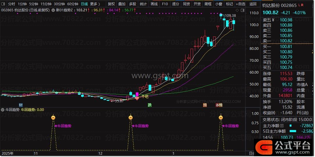 直接在通达信选股功能中执行,一键筛选出当日出现牛回趋势信号的个股,无需手动复盘,高效锁定目标标的。