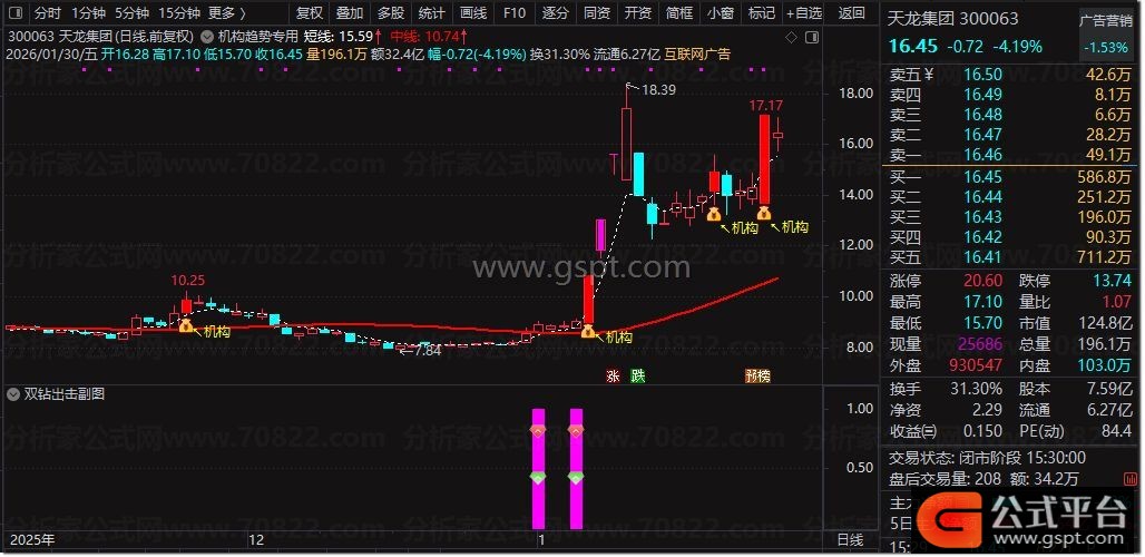 双钻:=gspt17>=3 AND REF(gspt17,1)< 3 AND gspt2 AND gspt10 AND gspt16 AND gspt19;