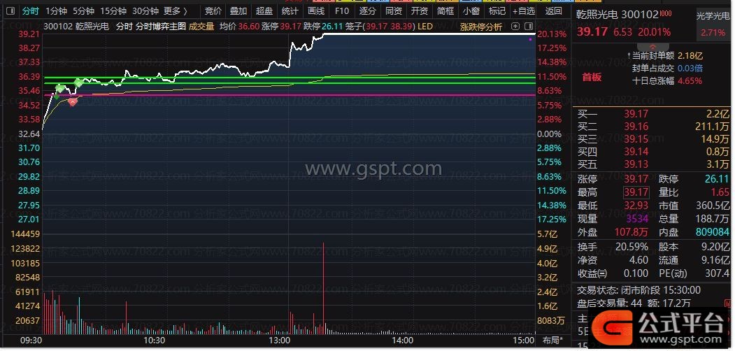 分时1:CONST(SUM(IF(gspt15,REF(C,1),DRAWNULL),0)),COLOR00FF00,LINETHICK2;