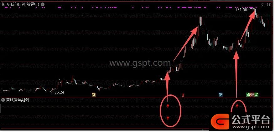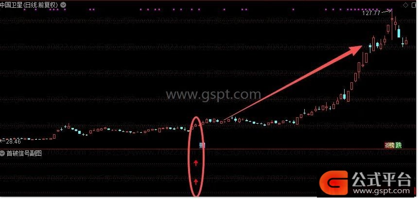 首破信号副图:双箭头出现,一般就是即将启动的信号;