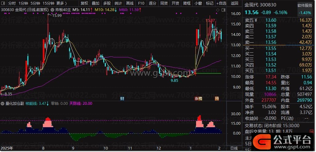 量化资金:=EMA(J,6),COLORRED;