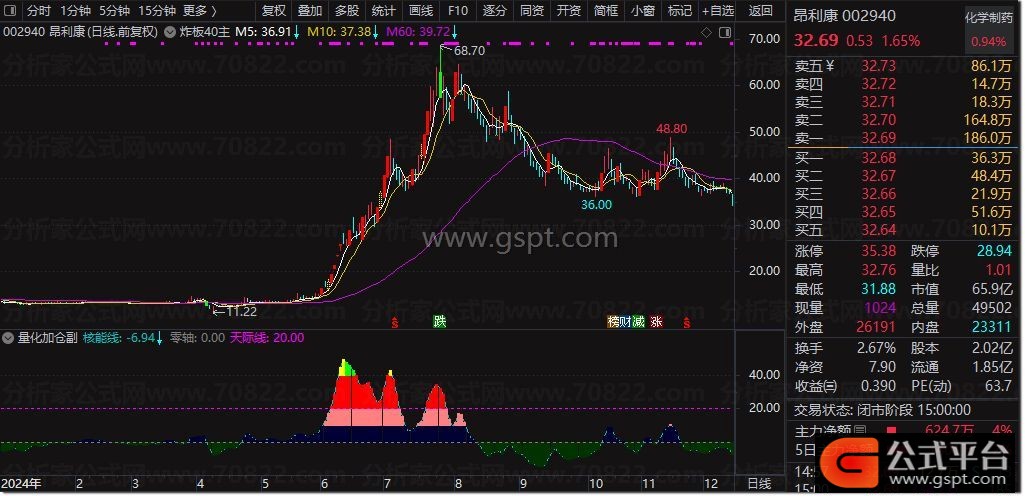 二次启动:=CROSS(量化资金,核能线) AND 量化资金>REF(量化资金,1);
