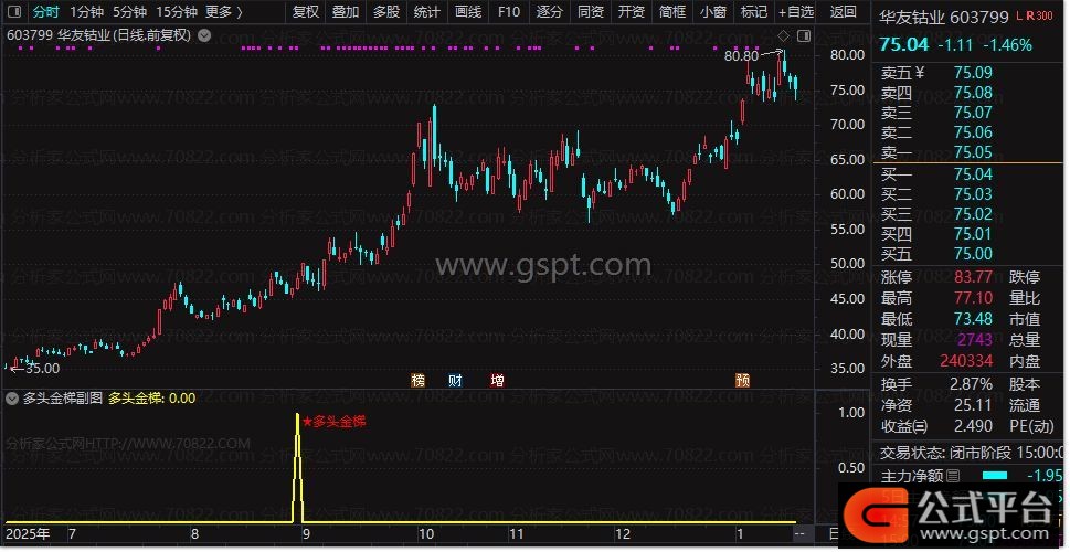 此外,多头金梯指标公式无未来函数,信号不出现漂移,可提供相对稳定的技术参考依据。