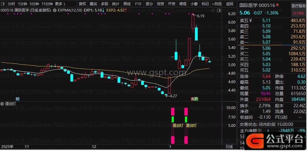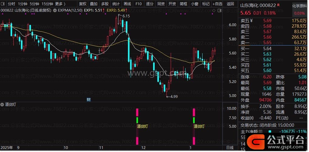 1. 副图出现“道剑灯”信号时,代表股价短期下跌动能衰竭、上涨动能启动,是短线买入参考点;