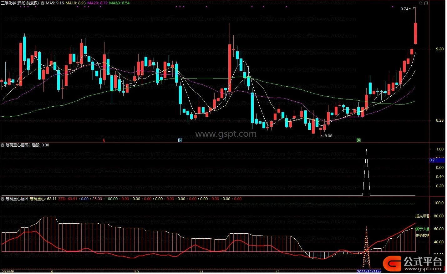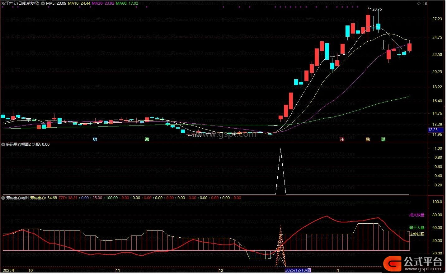 通达信『筹码重心』副图+选股指标,筹码分析 捕捉个股趋势启动点