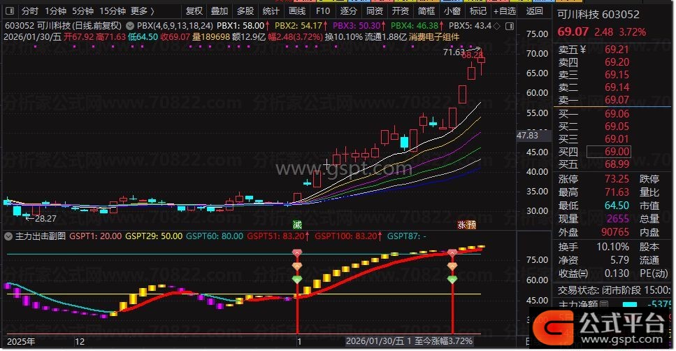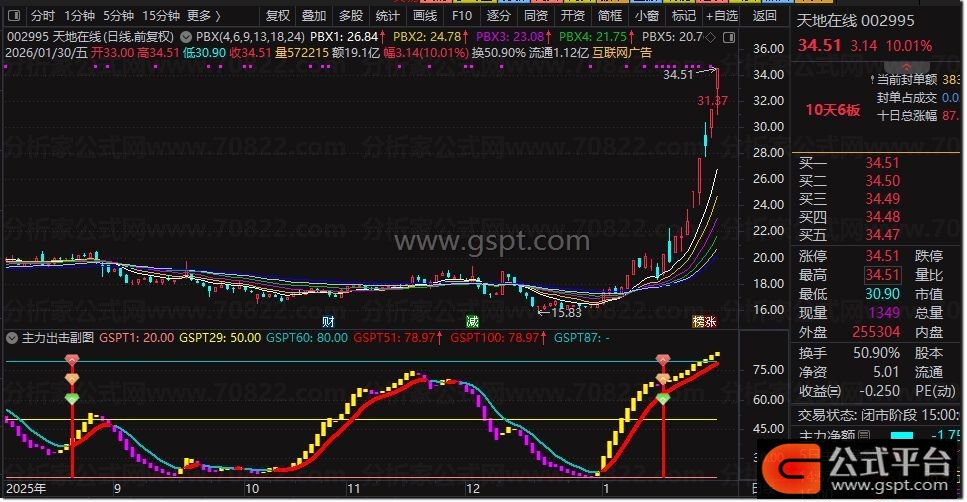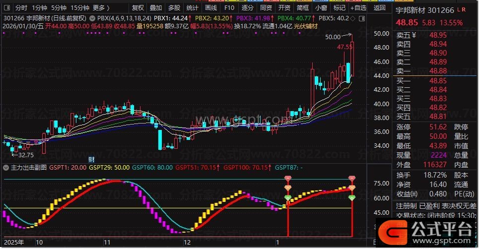 1. 副图观察:将公式加载为副图指标,关注红色粗线上穿及底部出现三重黄色图标(25/26/27号图标)的时刻,代表主力启动信号。