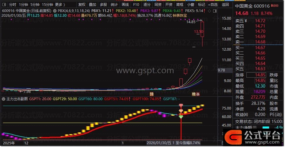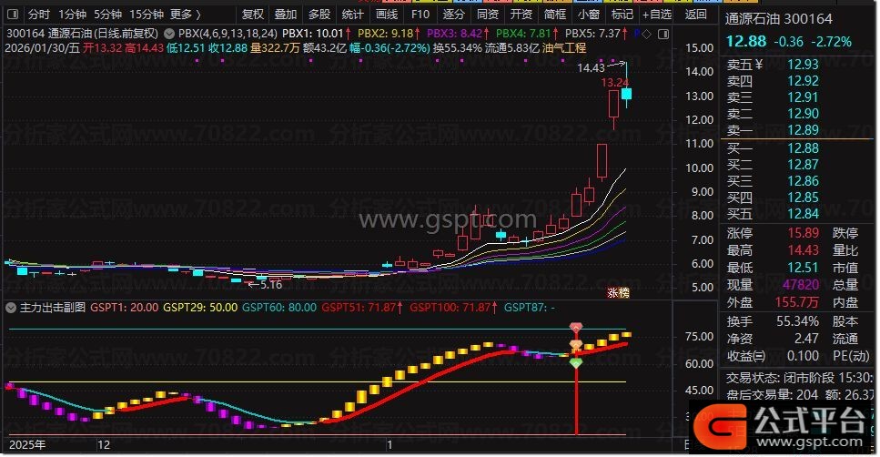 2. 选股应用:将公式用于选股,筛选满足 gspt89 AND gspt96 AND gspt21 条件的个股,即为高胜率(据称85%)的潜在爆发标的。