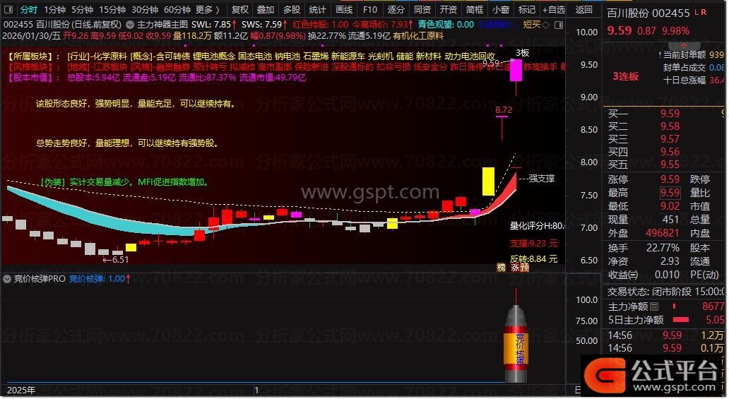 [竞价神兵]集合竞价排序和选股指标,筛选竞价强势潜力股,三票大涨...