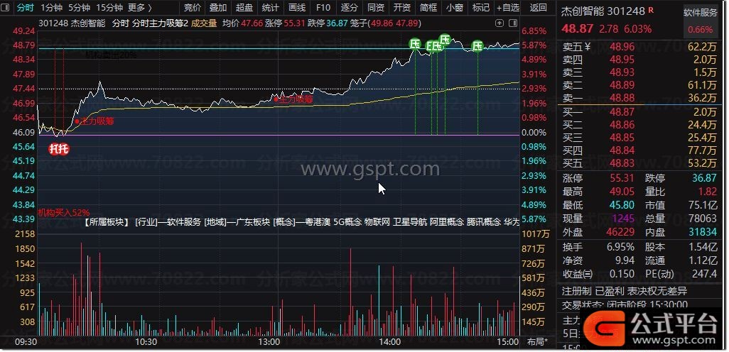 gspt7:=STRCAT(STRCAT('机构买入',CON2STR((100*gspt1)/gspt5,0)),'%');