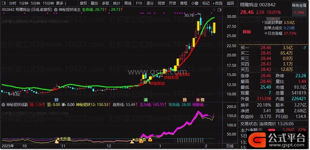 1. 套装指标三位一体,主图看趋势与信号、副图验主力与主升、选股一键抓启动标的;